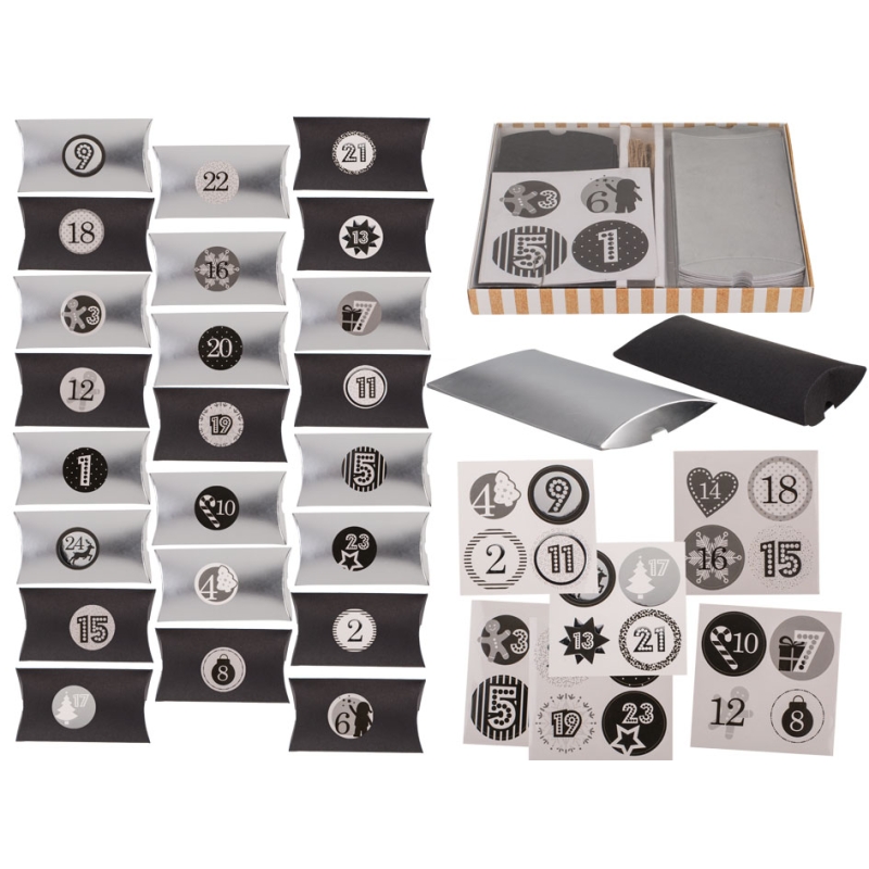 Adventskalder Set im Geschenk- (Karton, silber-schwarz)