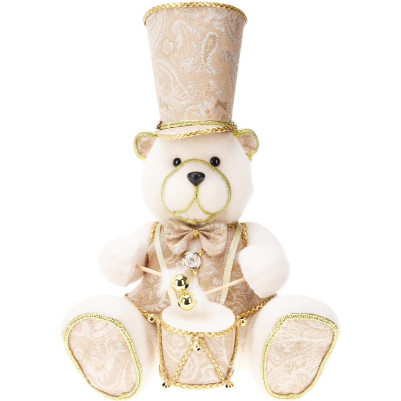 Bär sitzend mit Trommel & Hut (33 cm beige/gold)