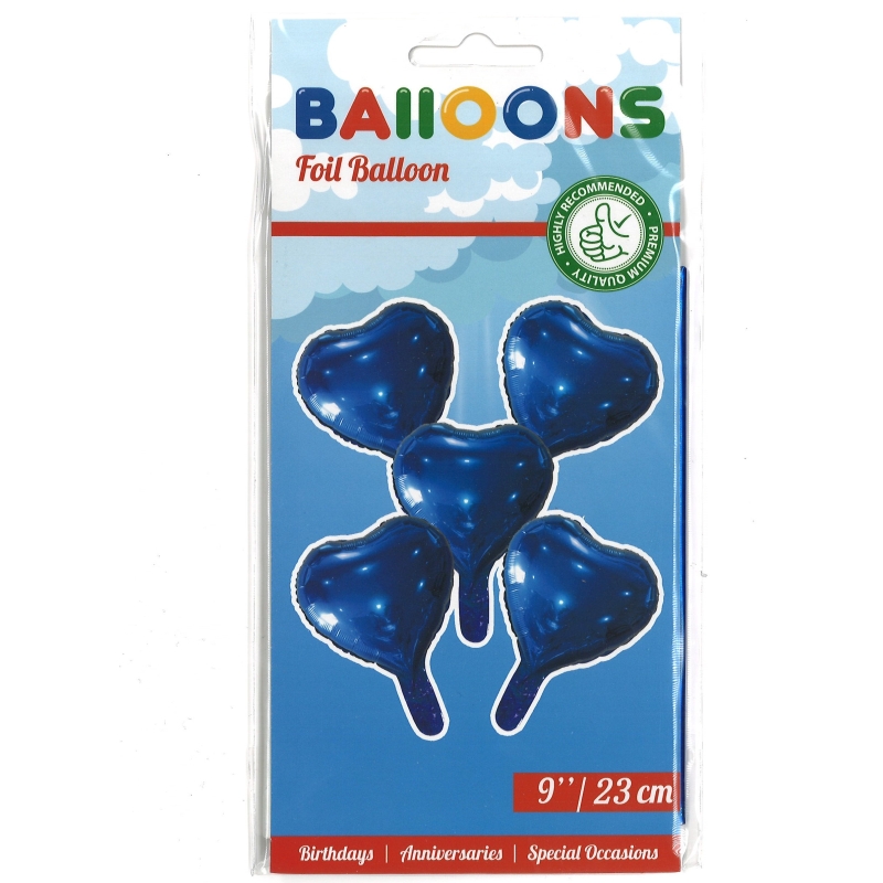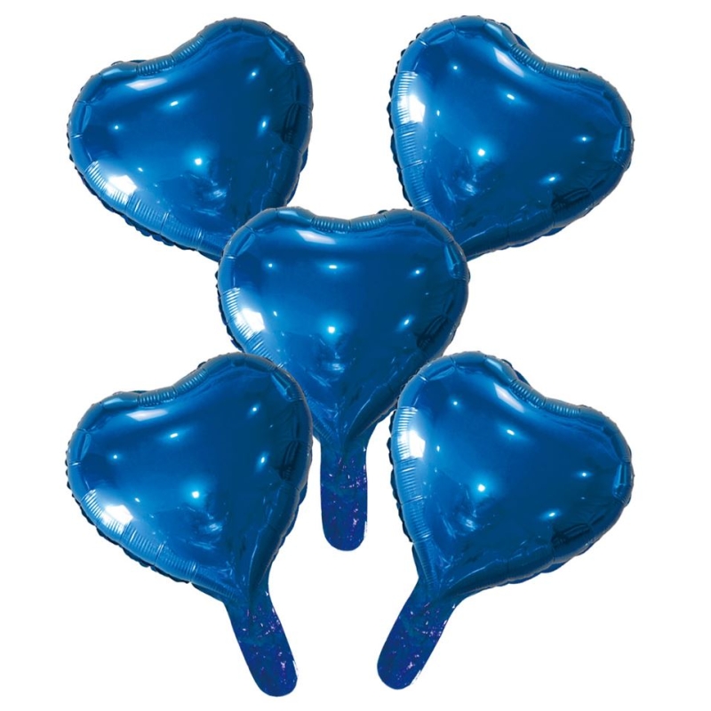 Ballon Herzen blau 23 cm (mit Strohhalm, 5 Stk.)