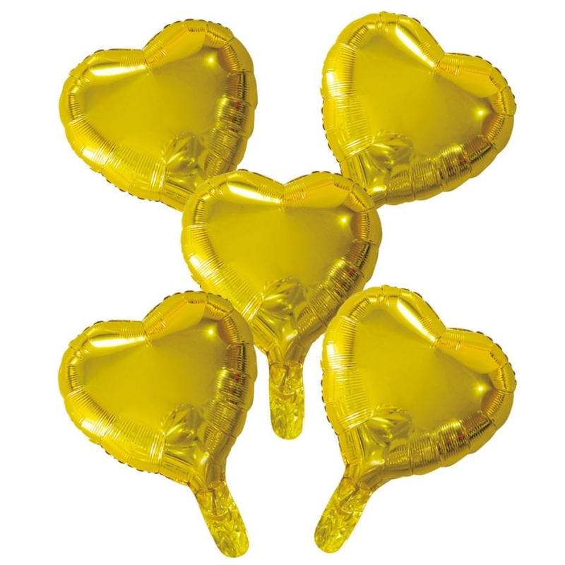 Ballon Herzen gold 23 cm (mit Strohhalm, 5 Stk.)