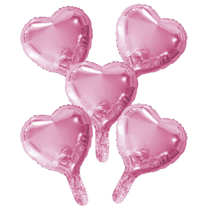 Ballon Herzen rosa 23 cm (mit Strohhalm, 5 Stk.)