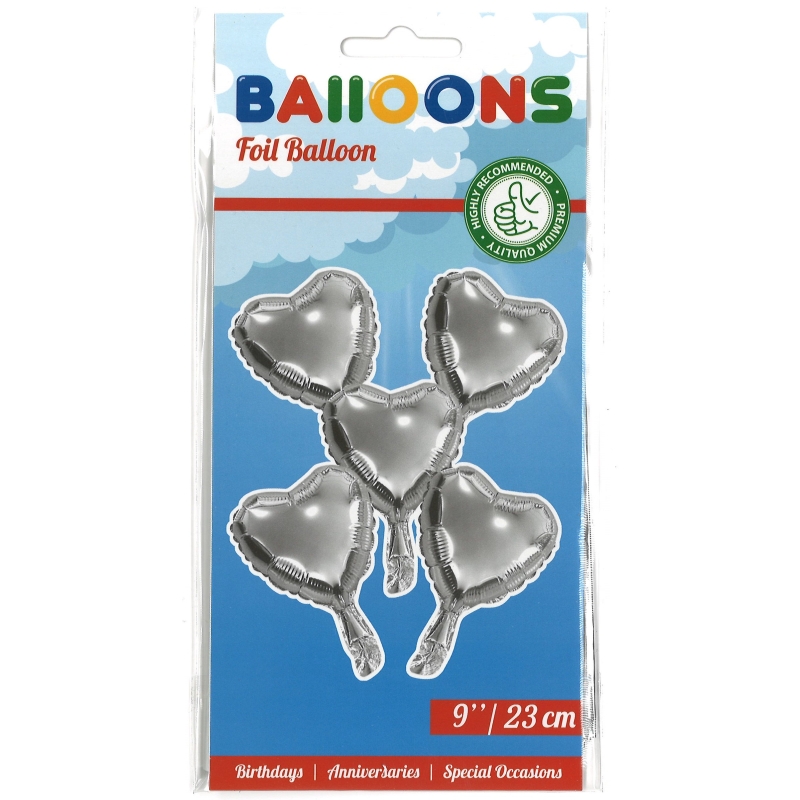 Ballon Herzen silber 23 cm (mit Strohhalm, 5 Stk.)