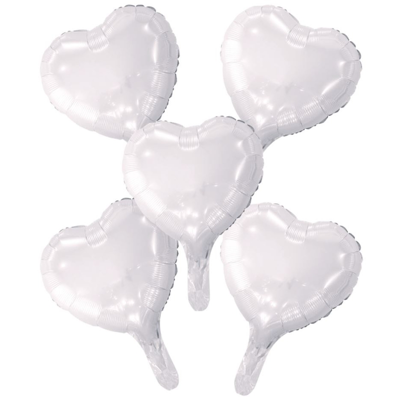 Ballon Herzen weiss 23 cm (mit Strohhalm, 5 Stk.)