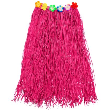 Hawaiirock Bastrock mit Blumen (pink, 80 cm lang)