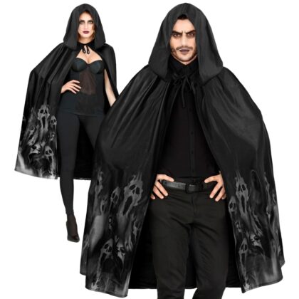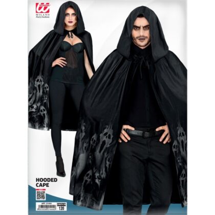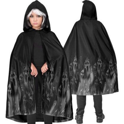 Geister Umhang mit Kapuze (schwarz 120 cm)