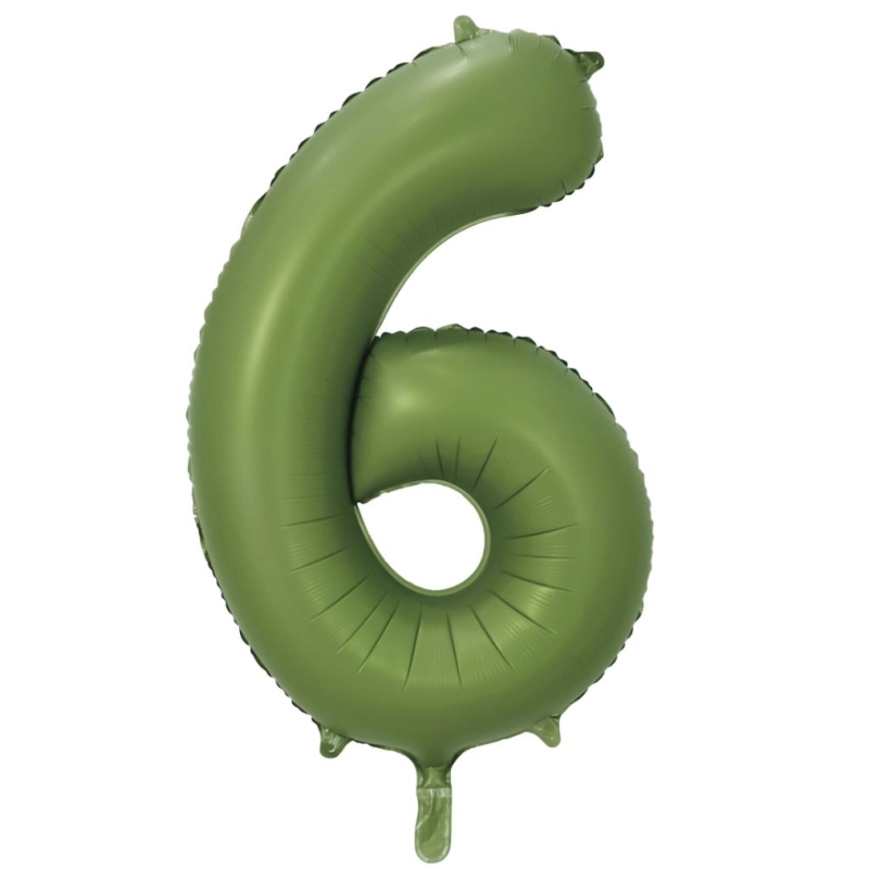 Folienballon Zahl 6 olivgrün (86 cm einzelverpackt)