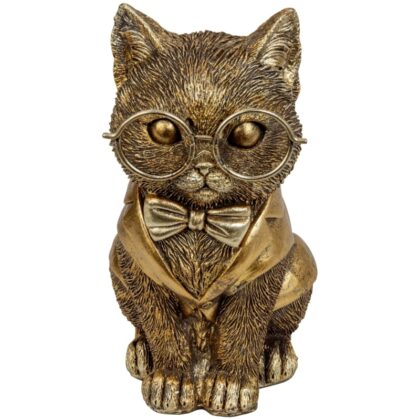 Lustige Katze in gold Poly (mit grosser Brille 15 cm)