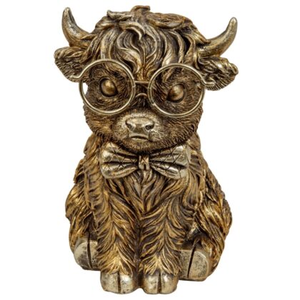 Lustiges Hochland Rind in gold (mit grosser Brille 15 cm Poly)