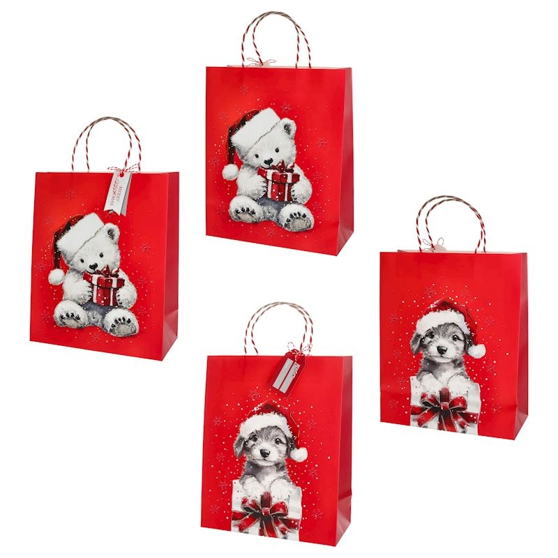 Geschenktasche Weihnacht (23 cm Hund & Bär 2 sort.)