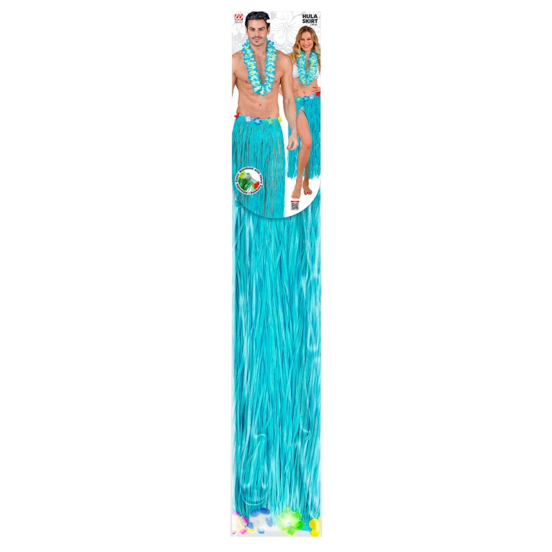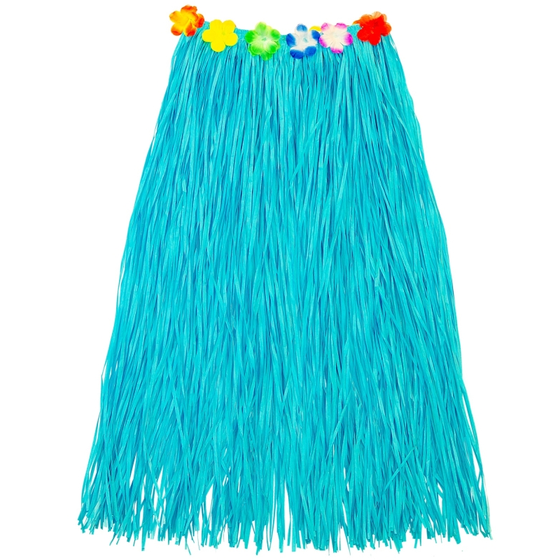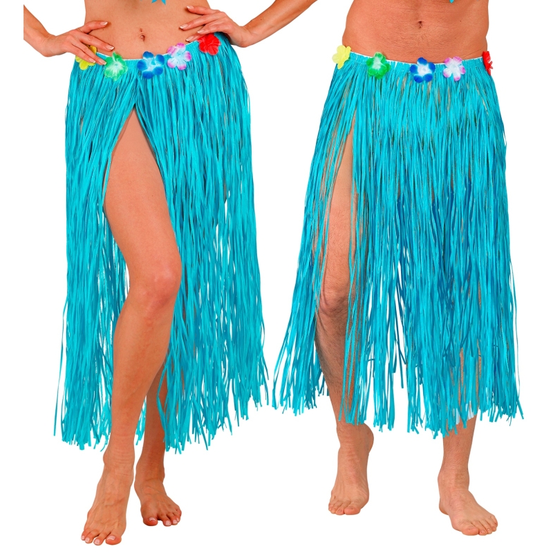 Der Artikel Hawaiirock Bastrock mit Blumen (hellblau, 80 cm lang) für Frauen passt zum Thema Hawaii