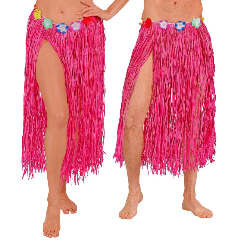 Der Artikel Hawaiirock Bastrock mit Blumen (pink, 80 cm lang) für Frauen passt zum Thema Hawaii