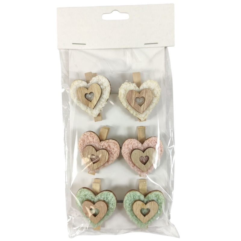 Holzherzen mit Stoffbesatz (als Klammer, 4cm)