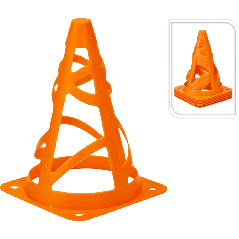 Der Artikel Kegelset 6 Stück 13x13x18 cm kommt in der Farbe orange daher.