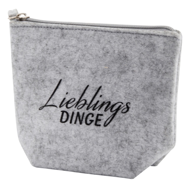 Kosmetiktasche Lieblingsdinge (grau Filz 15×12 cm)