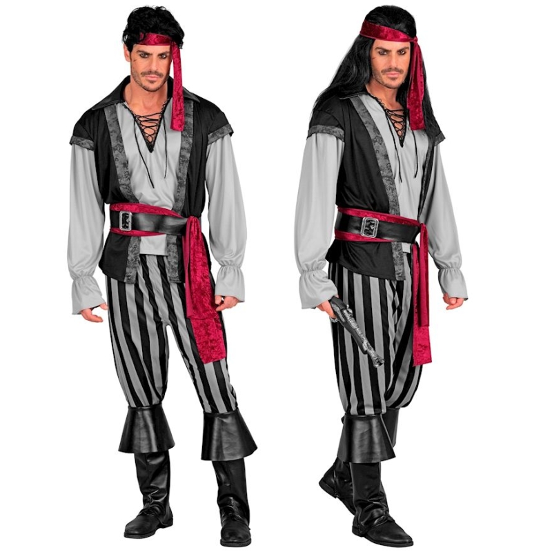 Der Artikel Kostüm Pirat (Hose, Shirt/Weste, Kopfband, Gurt) für Männer