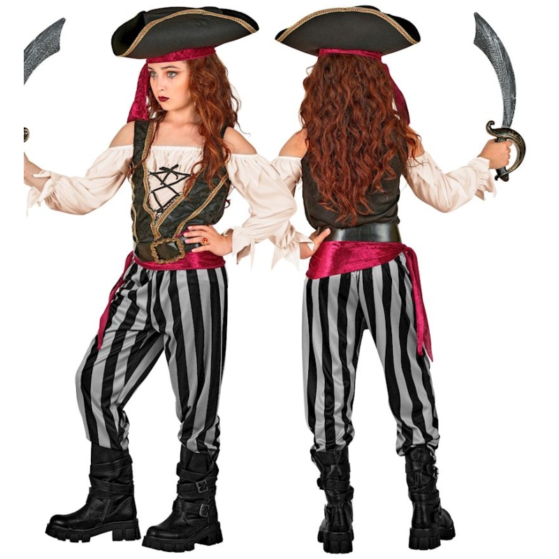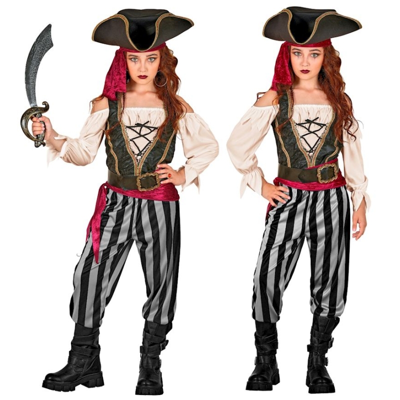 Der Artikel Kostüm Piratin (Hose, Hemd, Gilet, Hut, Gurt, Band) für Mädchen