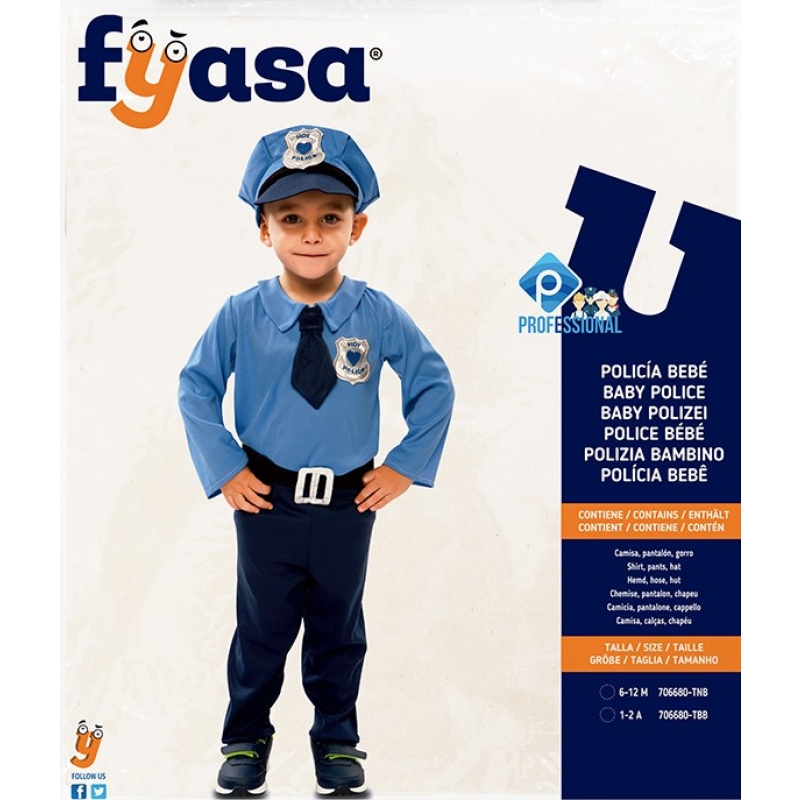 Der Artikel Kostüm Polizei 6-12 Monate (Hemd Hose und Hut) für Knaben passt zum Thema Polizei und eignet sich perfekt für den Anlass Fasnacht.