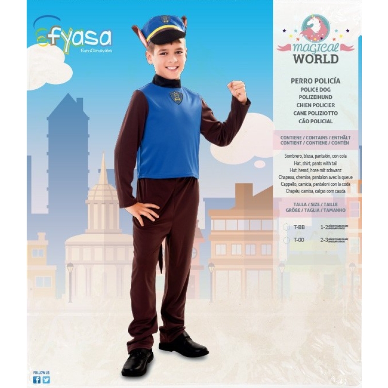 Der Artikel Kostüm Polizei Hund 1-2 Jahre (Hut, Hemd, Hose mit Schwanz) für Knaben und eignet sich perfekt für den Anlass Fasnacht.