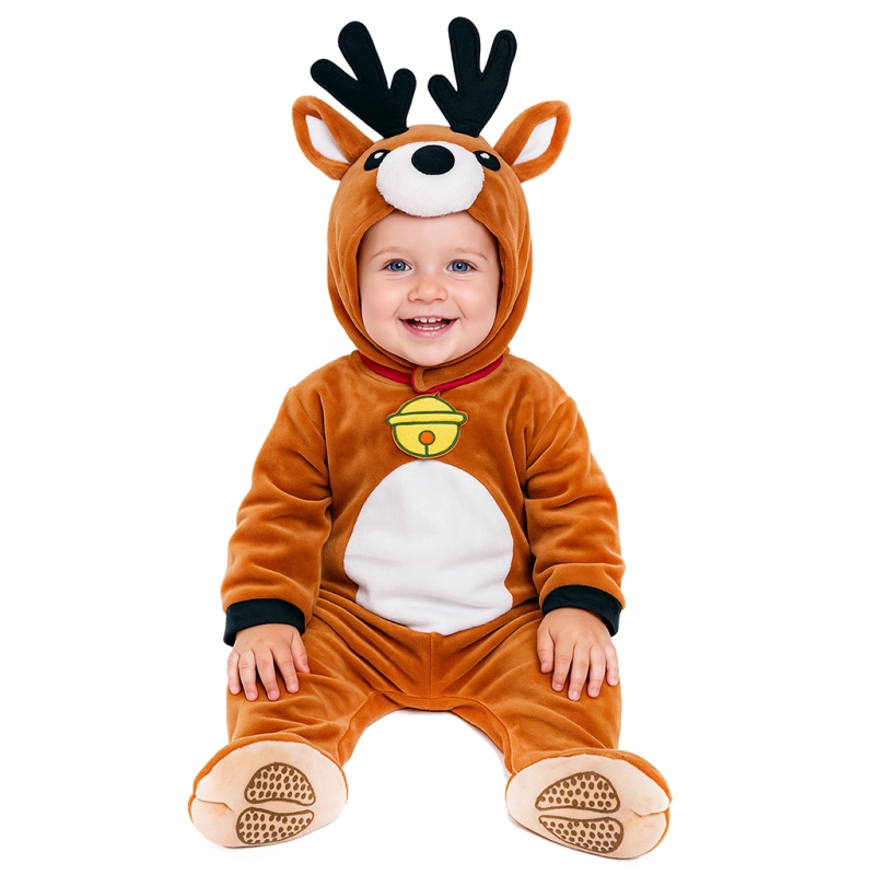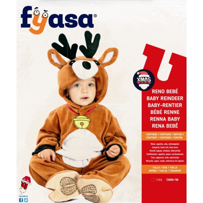Der Artikel Kostüm Rentier 1-2 Jahre (Overall mit Kopfteil,Schwanz &) für Unisex Kinder passt zum Thema Tiere und eignet sich perfekt für die Anlässe Fasnacht und Weihnachten.