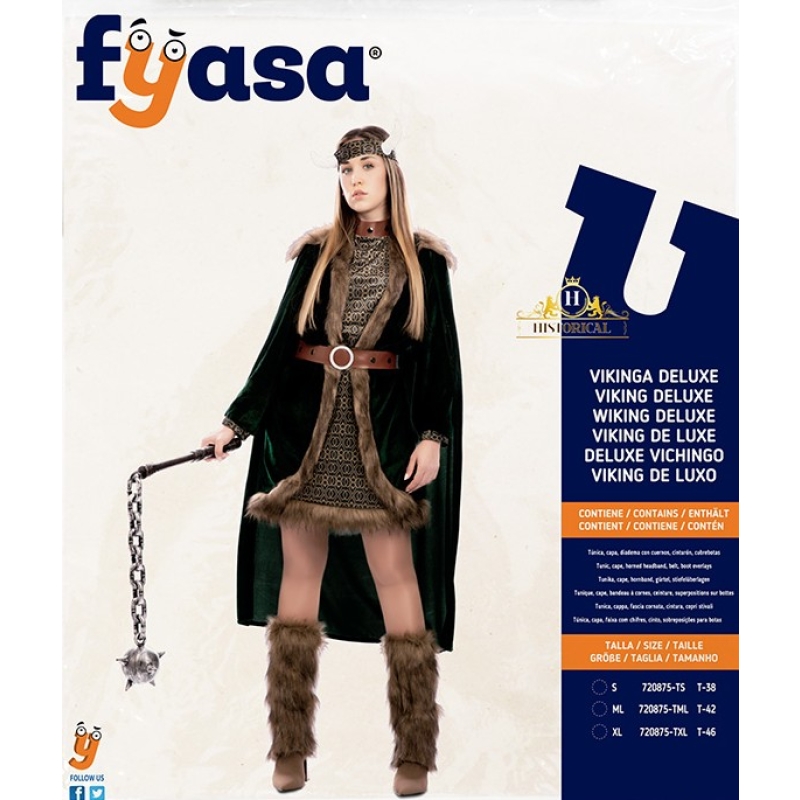 Der Artikel Kostüm Wikinger (Tunika, Cape, Hornband, Gürtel & Stiefel) für Frauen passt zum Thema Wikinger und eignet sich perfekt für den Anlass Fasnacht.