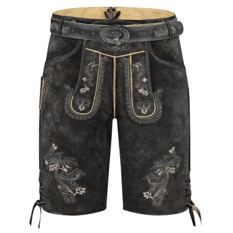 Der Artikel Lederhose kurz anthrazit (mit Gürtel Ziegenleder) für Männer passt zum Thema Skihütten Gaudi und eignet sich perfekt für den Anlass Oktoberfest.