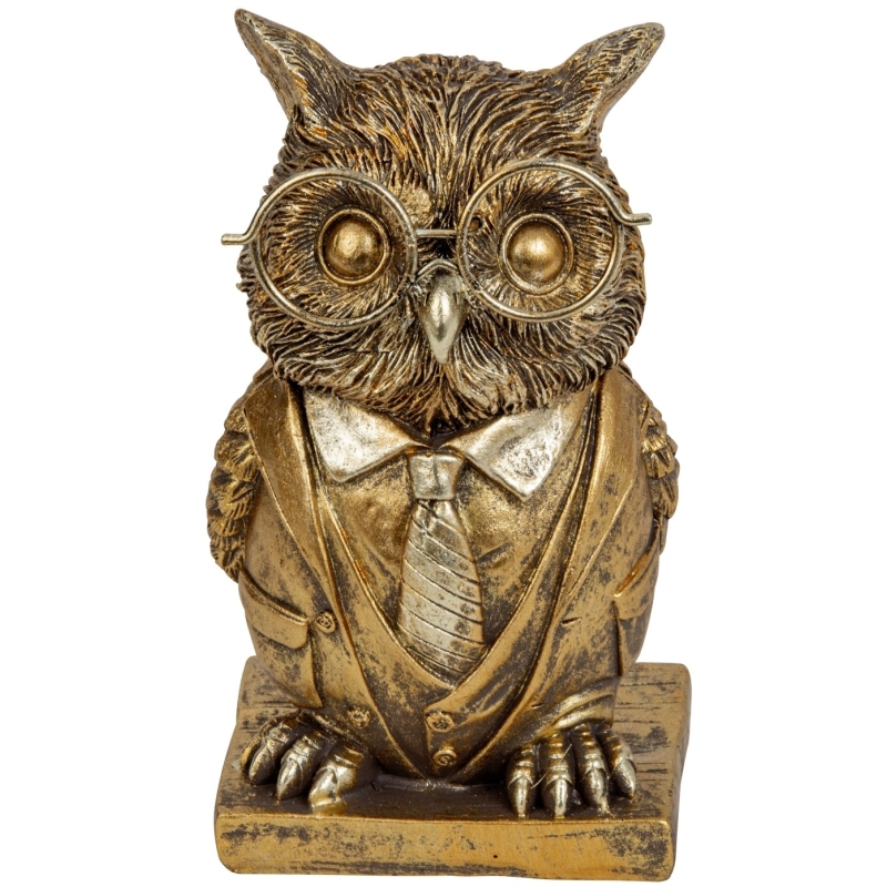 Lustige Eule in gold Poly (mit grosser Brille 15 cm)
