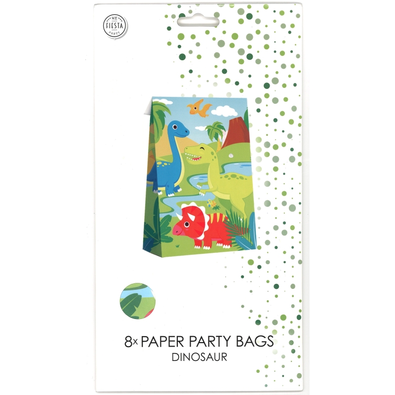 Partytüten Dinosaurier (8 Stk. 13×25 cm)