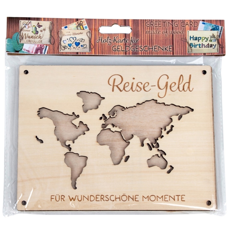 Reise-Geld Geldkarte aus (Holz 15×20 cm)