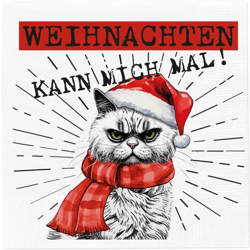 Servietten Weihnachten mit (Katze mit Sprüche, 33×33 cm)