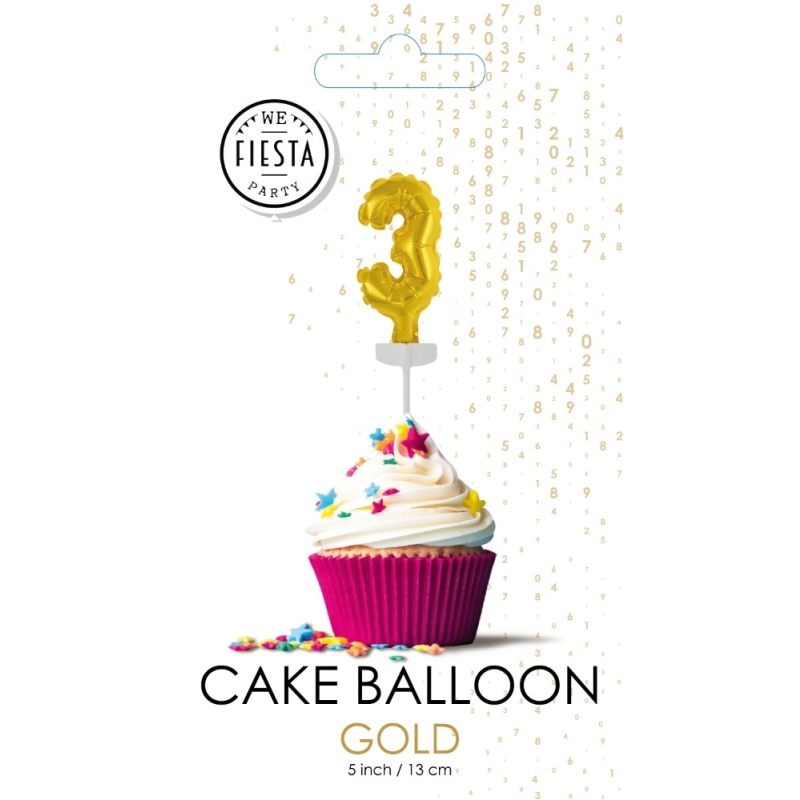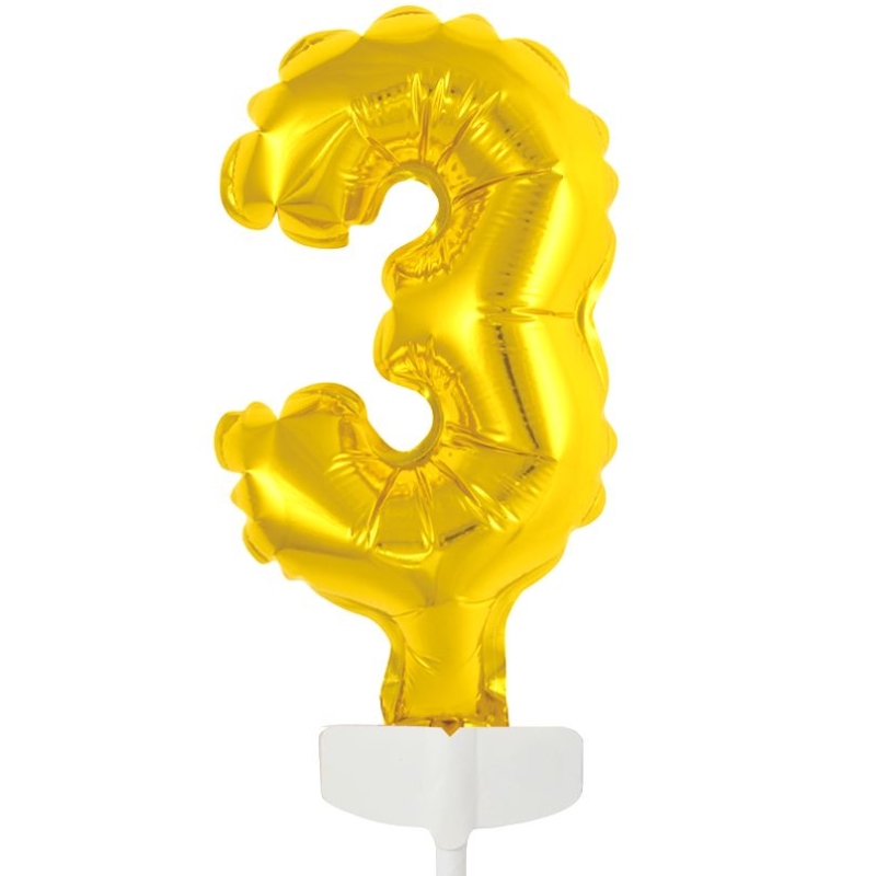 Tortenpicker Zahlenballon 3 (12 cm, gold)