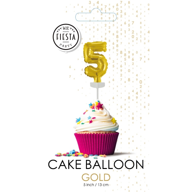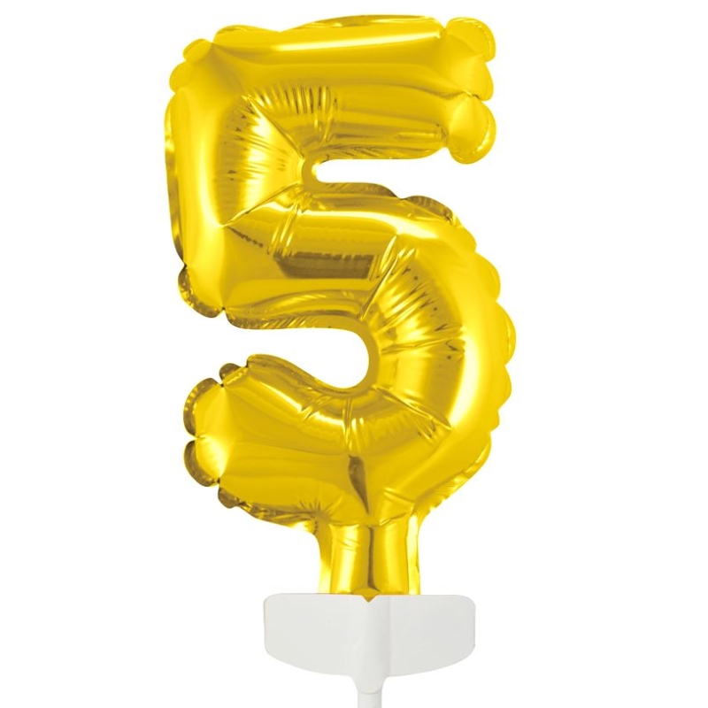 Tortenpicker Zahlenballon 5 (12 cm, gold)