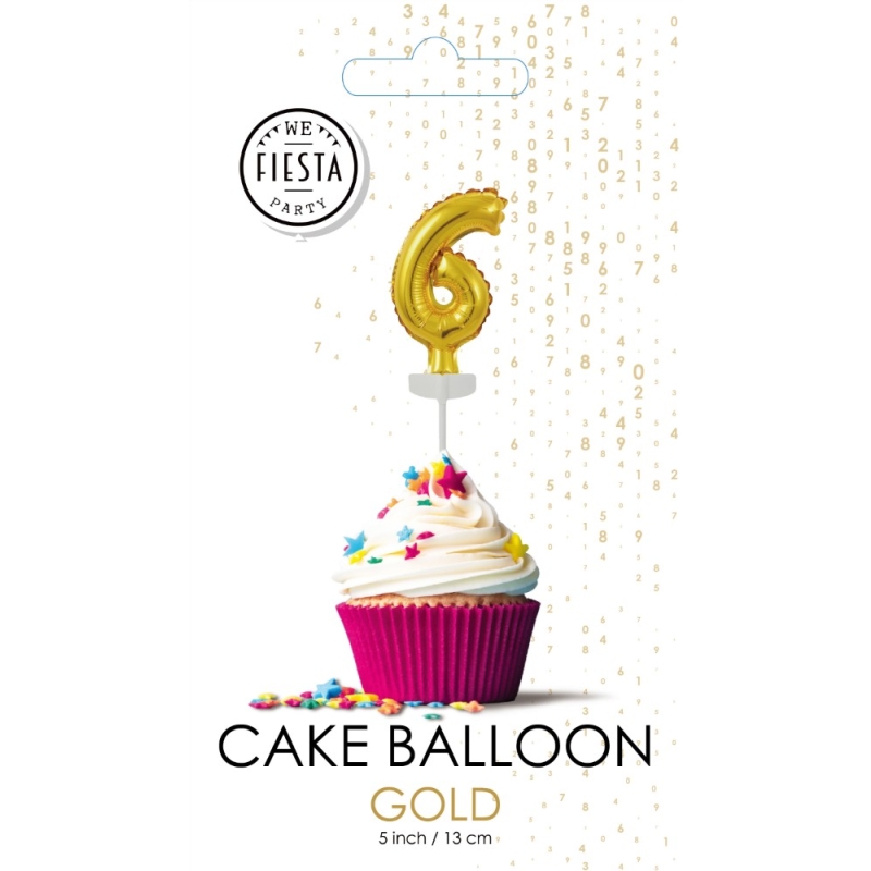 Tortenpicker Zahlenballon 6 (12 cm, gold)