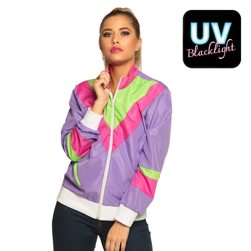 Der Artikel Trainingsjacke Retro (lila UV) für Frauen passt zu den Themen 70er sowie 80er & Bad Taste und eignet sich perfekt für den Anlass Fasnacht.