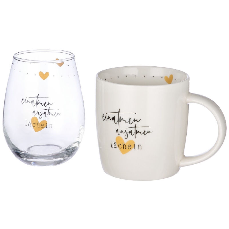 Trinkglas und Tasse bauchig (einatemen, ausatmen, lächeln)