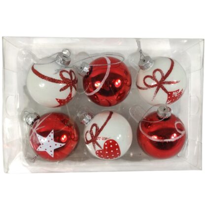 Christbaumkugel Glas 6er Set (rot/ weiss 6 cm)