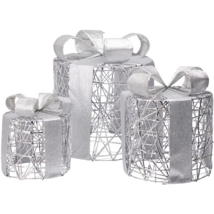 Geschenk Pakete mit 40 LED (3 tlg silber 17/23/30 cm Timer)