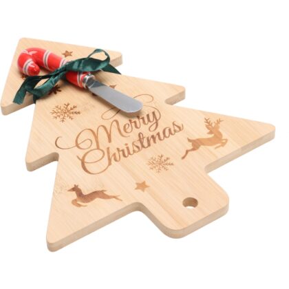 Käseplatte Bambus mit Messer (28×22 cm Merry Christmas)