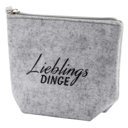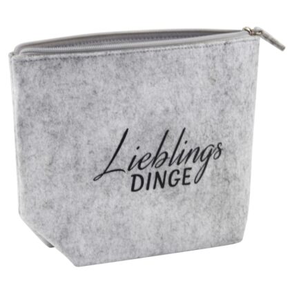 Kosmetiktasche Lieblingsdinge (grau Filz 14×18 cm)